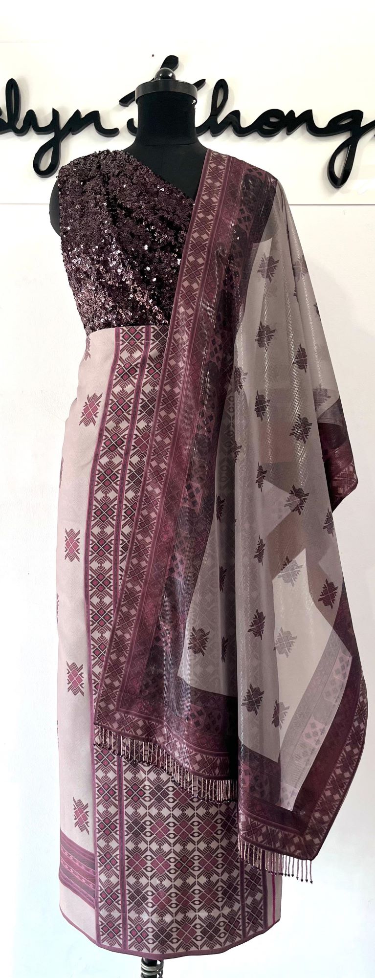 Digital Printed Wrap around set – this wrap around print is an amalgamation of amazing textile craftmanship with inspiration from Kuki Traditional Textile for women “Khamtang motif” and “Aikengpah motif”